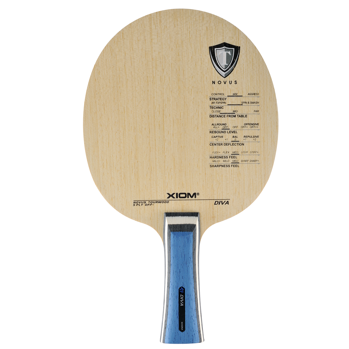 Основание DIVA сочетает в себе отличное чувство и высокие игровые характеристики для получения положительных эмоций от настольного тенниса. Это 5-слойное атакующее основание со средней скоростью. Но из-за высокой эффективности передачи энергии показатели скорости заметно выше при использовании атакующих действий, таких как топспин. Толщина основания 5,7 мм и отборные твердые породы дерева в верхнем слое придают максимальное чувство мяча при минимальной остаточной вибрации. Это обеспечивает отличную стабильность, способную удовлетворить игроков любого уровня. Даже если игрок не обладает высоким уровнем мастерства он сможет получить удовольствие от игры с основанием DIVA. Основание DIVA хорошо сочетается с серией накладок VEGA с технологией Hyper Elasto. С накладками VEGA PRO основание выдает удивительную мощность.