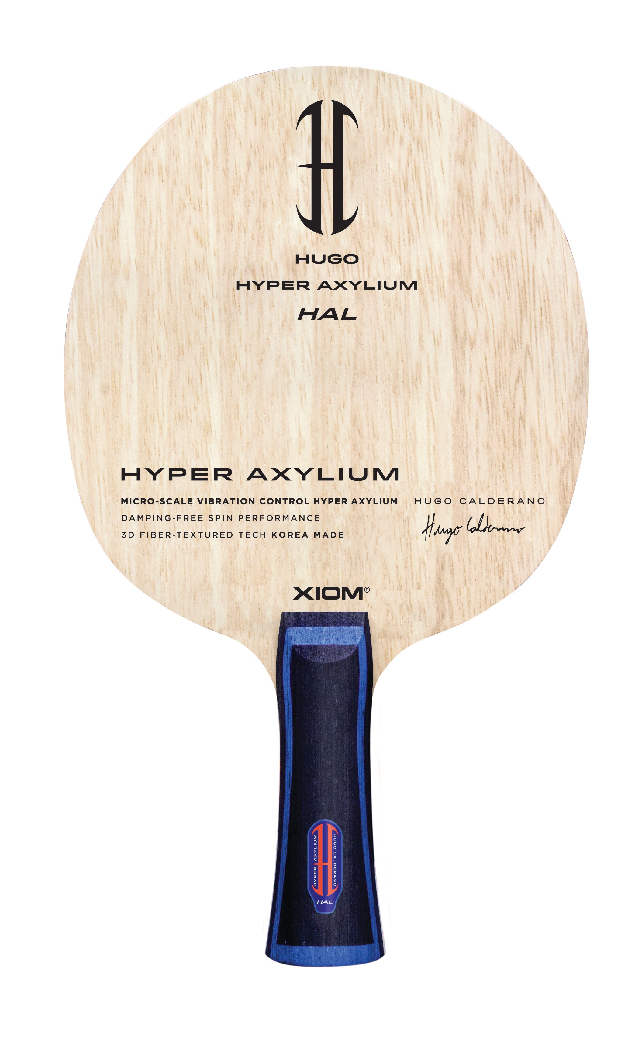 Сфокусировавшись на игре Hugo Calderano, который играет основаниями без карбона, компания XIOM в конце июня 2020 года разработало новое основание HUGO HAL (Hyper Axylium). Специальный материал HYPER AXYLIUM - это высококачественный Arylate оранжевого цвета, изначально разработанный компанией XIOM. Название этот материал получил HYPER AXYLIUM, так как он имеет несколько другие особенности, чем SUPER ARYLATE, используемый в основании HUGO SAL. HAL отличается большим чувством, более высокими показателями скорости отскока мяча и отличной сбалансированностью других характеристик.Основание HUGO HAL - это универсальное / атакующее основание, которое предлагает игрокам отличное чувство и контроль, но в то же время можем обеспечить высокую скорость и мощь таким игрокам мирового класса, как Hugo Calderano.Характер основания HUGO HAL обеспечивает необходимое время задержки мяча и хорошо сочетается с более жесткими накладками VEGA X/PRO и OMEGA.